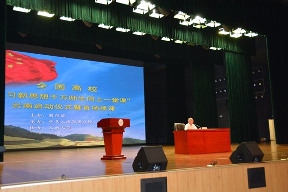 6月6日,全國高校"學習新思想千萬師生同上一堂課"云南啟動儀式暨首場授課在云南大學呈貢校區(qū)舉行。教育部督導聯(lián)絡(luò)員丁浩到現(xiàn)場指導工作。云南大學黨委副書記張昌山教授,中央馬克思主義理論研究和建設(shè)工程首席專家、云南民族大學教授張建國分別在啟動儀式上授課。