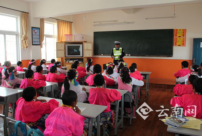 云南香格里拉交警開展中小學(xué)安全宣傳教育日活動(圖)